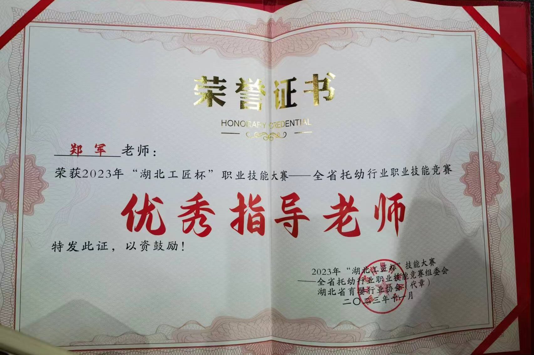 大赛由湖北省职业技能鉴定指导中心、湖北省育婴行业协会联合举办,决赛现场群英荟萃,来自全省院校及托育行业的近百名参赛选手同台竞技、切磋交流。通过实操考核、理论考试的双重比拼,经过了激烈的角逐和专家评审,我院获得院校组团体二等奖,郑军老师获优秀指导教师奖。比赛过程中,我院3名参赛选手沉着应赛,展现了出色的专业技能和良好的应变能力,充分彰显了我校的办学水平和竞赛实力。