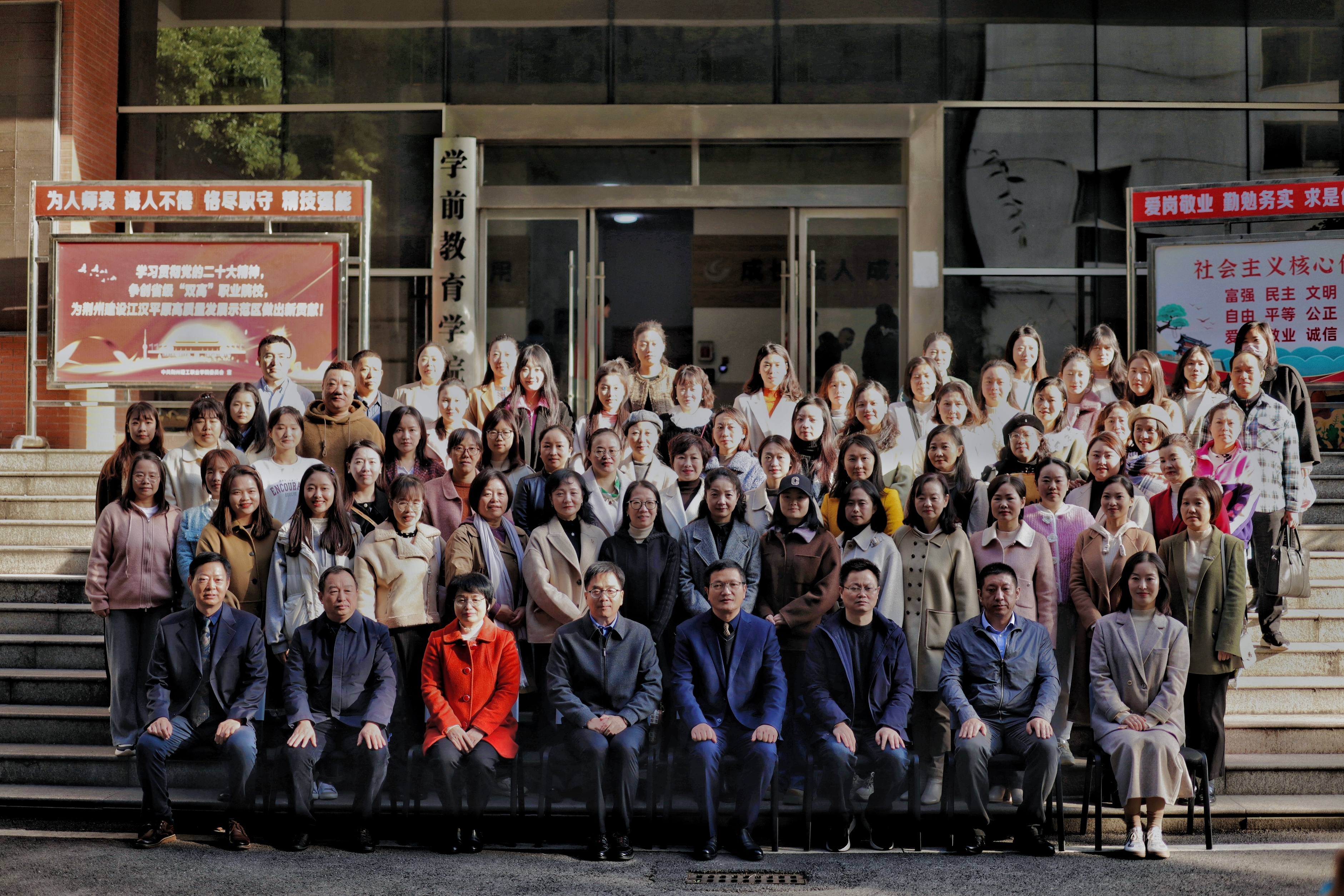 由荆州学前教育职业教育联盟主办,荆州理工职业学院承办,东北师范大学出版社、湖北银行股份有限公司荆州分行协办的"融合创新育未来"荆州市学前教育职教联盟第一届年会于11月18日在我校召开。