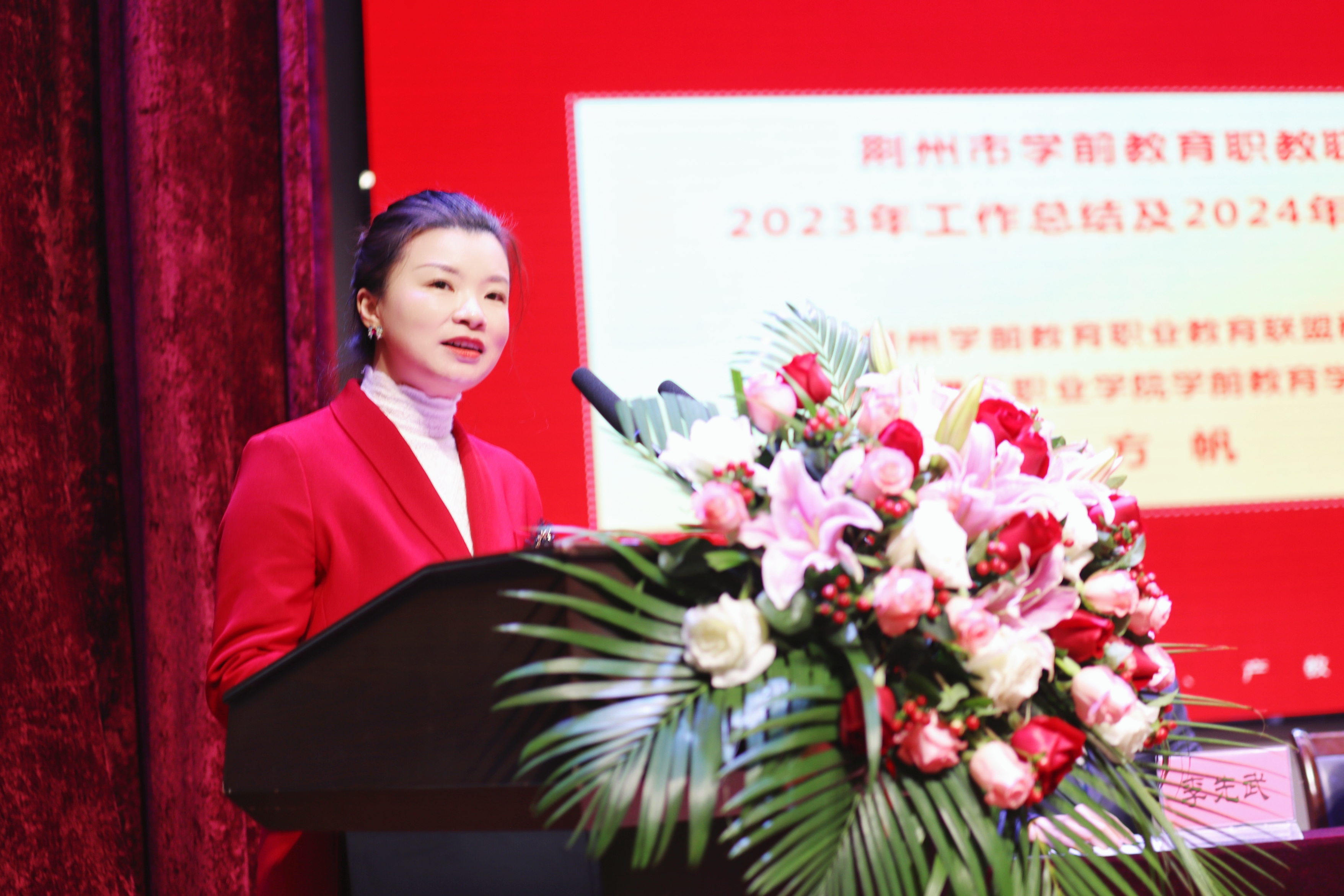 荆州学前教育职教联盟秘书长、荆州理工职业学院院长方帆代表联盟秘书处做《荆州学前教育职业教育联盟2023年工作总结及2024年工作思路》报告。