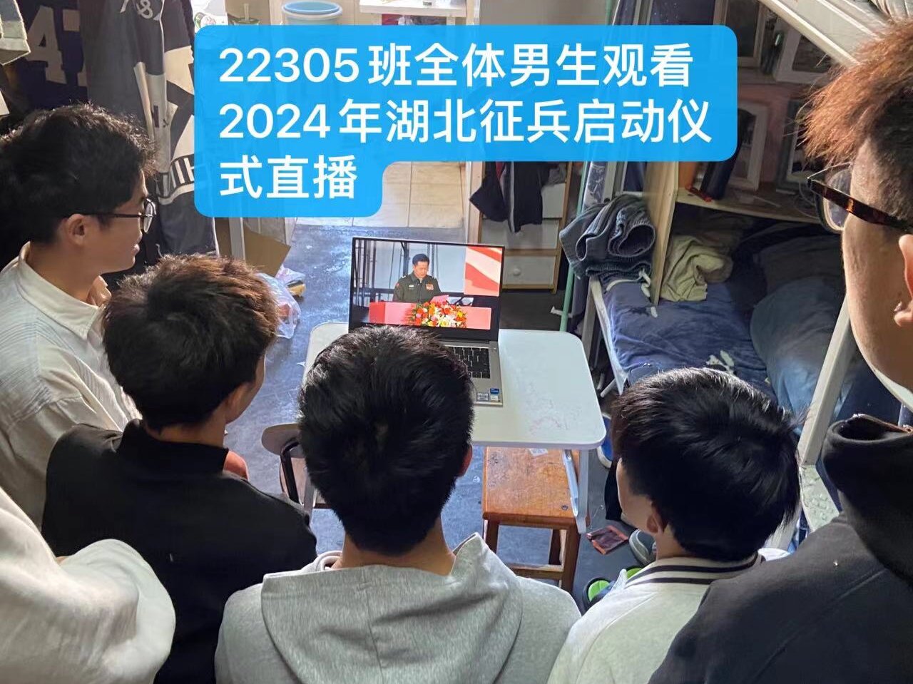12月7日15时,湖北省2024年征兵宣传进校园启动仪式在武汉理工大学举行,我院96名在校男生线上观看启动仪式并聆听政策宣讲。我院积极动员学生自愿当兵,体现了学院对国防教育的重视。