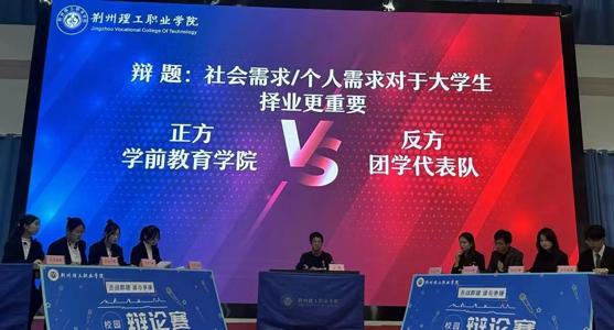 为提高学生思辨能力,培养团队精神,锻炼语言表达能力,为此2023年11月29日下午在学生活动中心(中校区),开展荆州理工职业学院"青春思辨,筑梦未来"辩论比赛。本次学前教育学院抽到的是正方,题目是"社会需求对大学生择业更重要"。
