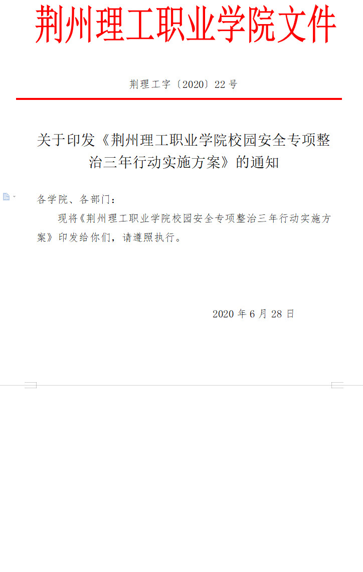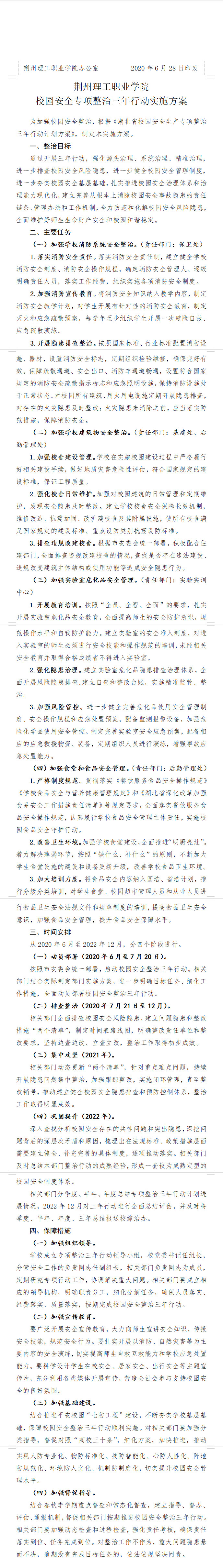 关于印发《荆州理工职业学院校园安全专项整治三年行动实施方案》的通知