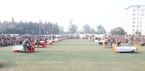 比赛分3组进行,共有54名同学参加了比赛。赛场上,选手们沉着冷静,按照教官教的方法一步一步娴熟地整理被子。他们镇定自若,游刃有余,显示出了扎实的基本功,把在军训中从教官那里学到的技能发挥得淋漓尽致。选手们娴熟的动作,熟练的操作技巧赢得了评委和现场观众的一致好评和阵阵掌声。通过激烈的比拼,六连获得本次军训内务大比拼活动的第一名,十八连获得第二名,一连获得第三名。 通过本次活动充分展示了学院2012级新生的风采,丰富了同学们的军训生活,提高了同学们讲文明、树新风的自觉性。 此次内务评比一定程度上督促了各连的内务工作,在全团形成了"你追我赶、奋勇争先"的良好氛围。相信在今后的训练生活中,全体参训新生一定会以更高标准要求自己,端正态度,严肃作风,从身边的点滴小事做起,培养良好的生活习惯,展现荆州理工职业学院学子积极向上的精神风貌。 |