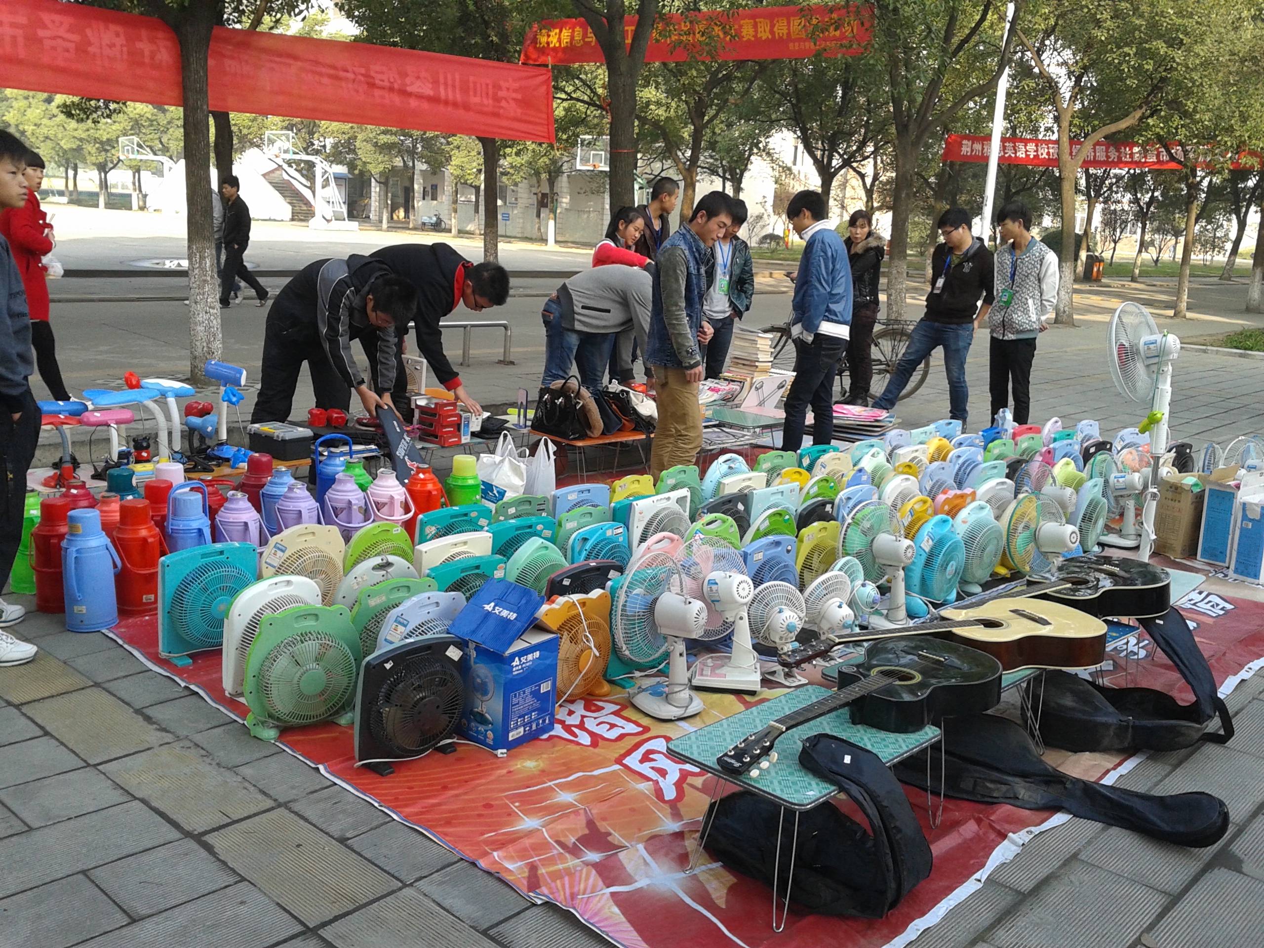 "跳蚤市场"给在校学生提供一个便利的平台,以低廉的价格出售同学们所需的东西,比如书籍资料,风扇开水瓶……一系列生活所需的物品(除私人用品)皆在共同创造节约型、环保型温馨校园,面向大一大二学生,吸引了大多数人的眼球。在过程中难免遇到一些小困难,但在机动组的协调下,工作圆满完成。