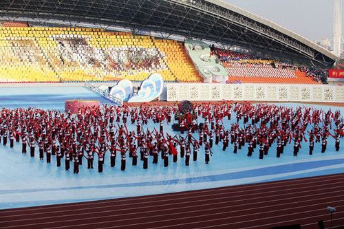 据悉,自承接省运会开幕式演出任务以来,学院高度重视,各职能部门精心组织,挑选了420名大学生担任青年鼓手,克服种种困难,在导演组的指导和训练下,经过近两个月的排练,出色的完成了演出任务。