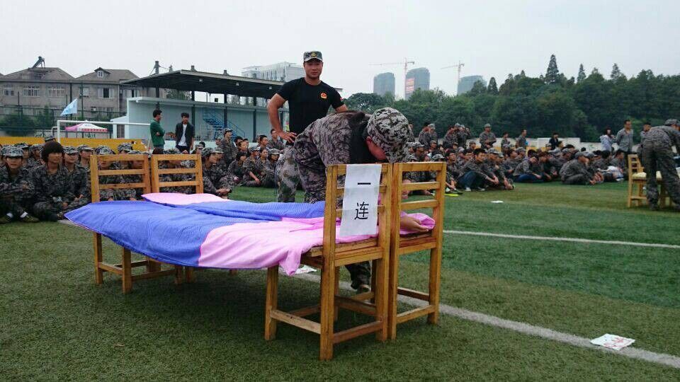 本次军训内务大比拼在学工处王处的精彩讲话中拉开了帷幕。比赛的具体规则是要求在10分钟之内将被子叠好,中途不准休息或是打报告,时间一到立刻停止,然后接受评审。