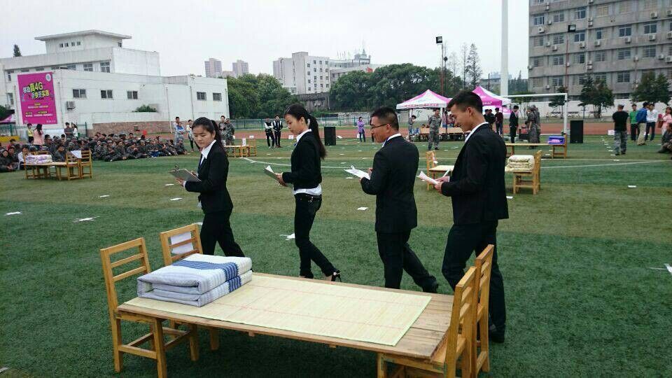 为进一步检验14级军训内务管理实效,培养学生的动手能力和生活自理能力,并为他们艰苦的军训生活增添乐趣。2014年9月15日15时30分,我校在运动场举行了一场精彩激烈的军训内务大比拼活动。