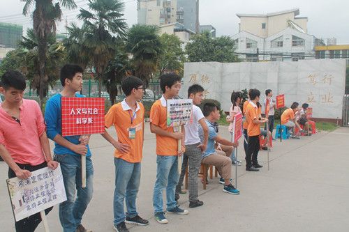 在今年的新生接待工作当中,有来自全院各系各年级的志愿者。那些胸前佩戴着工作证,面带微笑的正是我们那些可爱的志愿者们。他们有的在门口接应,有的在接待处帮忙为远道而来的新生和家长端茶倒水,有的帮新生扛行李,当问起他们累不累时,他们有的说:"累是累,但挺有意义的";还有的说:"我们去年就是有学长学姐迎接的,那时很感动,现在我们也成了学长学姐,接新生是我们义不容辞的责任";"这一过程,虽累却值得纪念";"工作期间学院领导