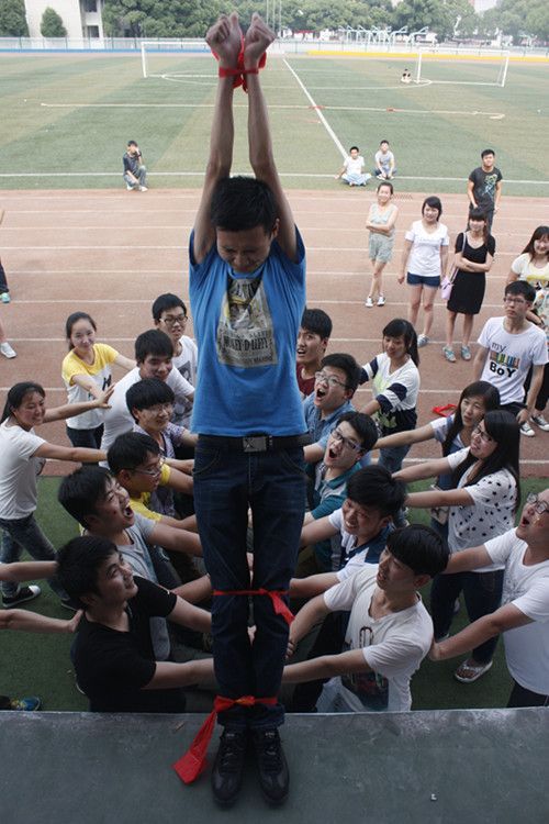 此次趣味运动会主要包括十人九足、心心相印、人椅、信任背摔和拔河五个项目。在活动过程中同学们都摩拳擦掌,亟待一展雄风。整个活动现场气氛异常活跃,尤其是在拔河比赛中,不仅是双方队员力量的较量,场边助威的拉拉队员们也不甘示弱,加油声此起彼伏,广阔的足球场上空回荡着的都是同学们的呐喊声。