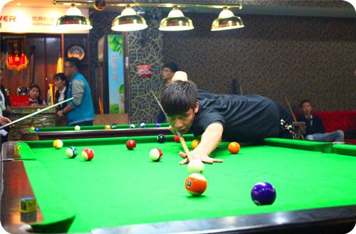 又一轮,徐杰、马水森、陈光念等人成绩优异,参加更高一层的比赛。高手与高手之间的对决,胜负就在一念。其中马水森与对手双方均胜出五局,比赛进入赛点,马水森同学沉着应战,紧紧的把握住对方的一个小小的失误,剩下一个黑8,俯身、屏气、瞄准、出杆动作一气呵成,啪--一声脆响,黑球完美入袋。比赛胜利。