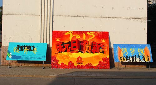 新年将至,我院也处处洋溢着节日的喜庆,各社团的同学们,也早早地做好了迎接新年的准备。和往年一样,学校的主干道旁,早早地拉上了横幅,海报上的浓浓暖意,让瑟瑟寒风肆掠的严冬也不敢染指。一幅幅作品表达了大家新年的祝福,营造了喜庆祥和的节日氛围。
