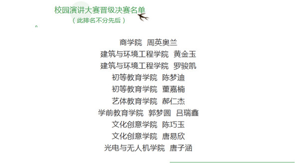 经过层层选拔,来自各个学院的19名优秀同学参加了此次演讲比赛,他们用昂扬激情将青春的绚烂与多彩展现在我们的面前。主持人的完美开幕词和同学们用热烈的掌声拉开了比赛的序幕。