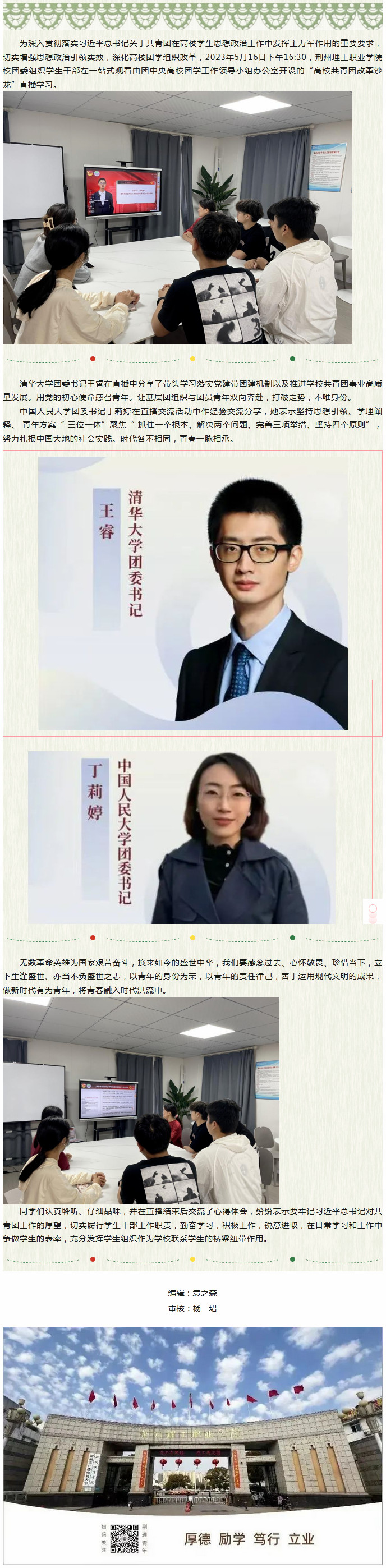 “三室三坊”一站式动态|我校组织团学干部观看“高校共青团改革沙龙”直播课