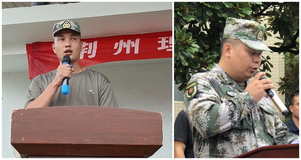 东校区教官张溯辉、中校区教官邹瑞代表全体军训教官发言,他们表示,将严格按照军训工作方案,精心组织,各负其责、团结协作,确保安全,为全体参训同学提供一场难忘的人生奋斗"必修课"。