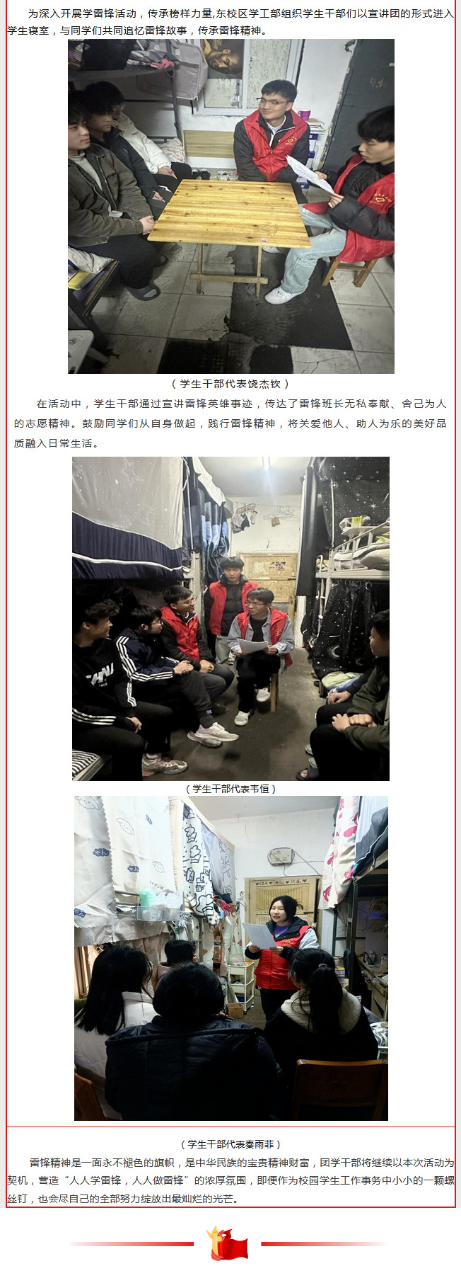 东校区学生干部宣讲团走进学生寝室传承雷锋精神