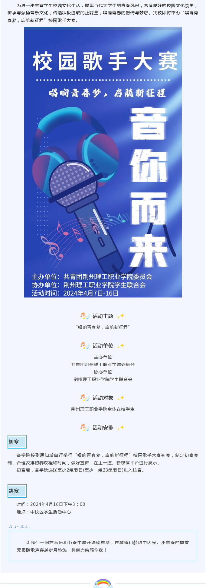 “唱响青春梦,启航新征程”校园歌手大赛报名开始啦