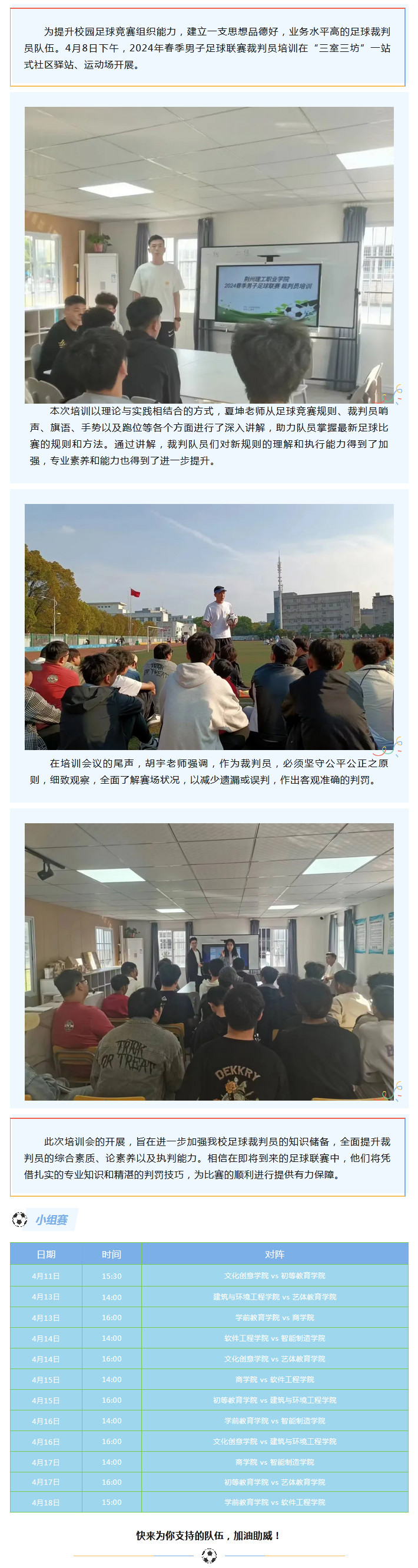 “三室三坊”一站式动态|我校开展2024年春季男子足球联赛裁判员培训