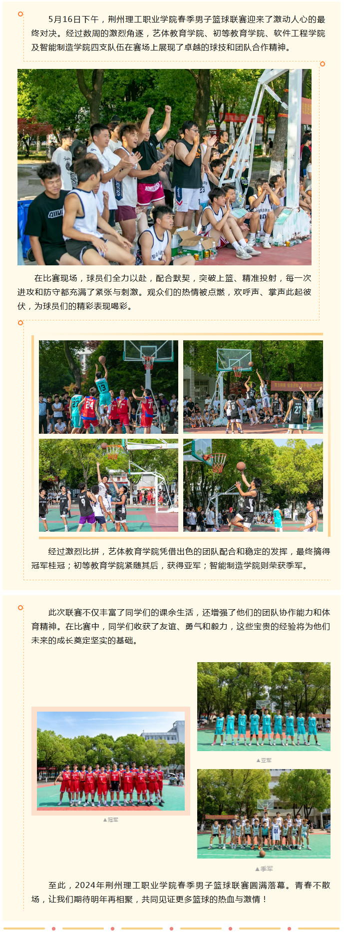 荆州理工职业学院春季男子篮球联赛圆满落幕