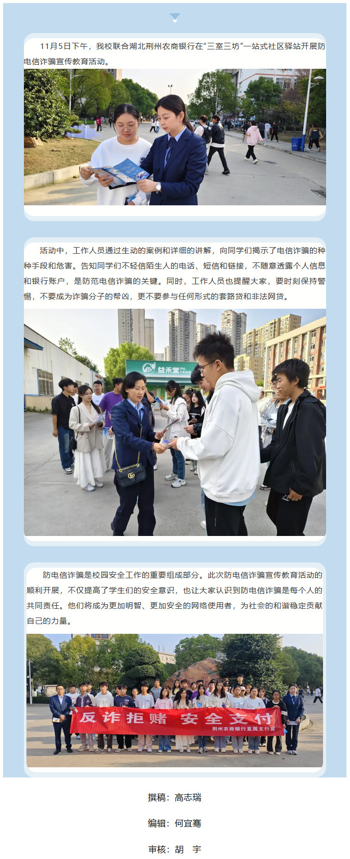 “三室三坊”一站式动态|我校联合荆州农商银行开展防范电信诈骗宣传教育活动