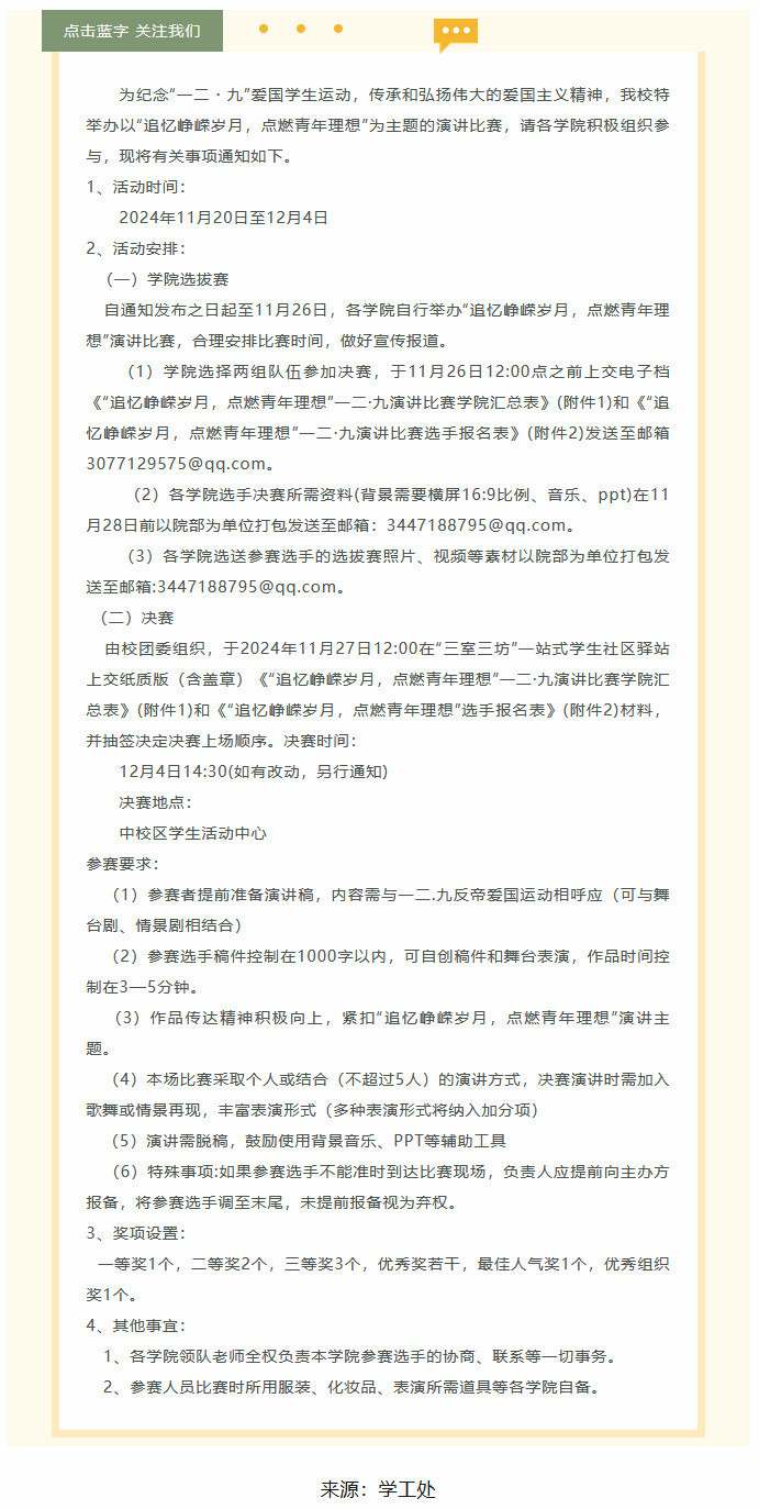 “追忆峥嵘岁月,点燃青年理想”一二.九演讲比赛等你来!