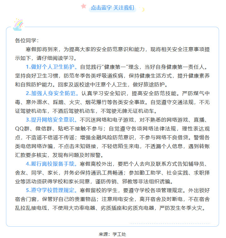 同学们,寒假安全温馨提示请查收