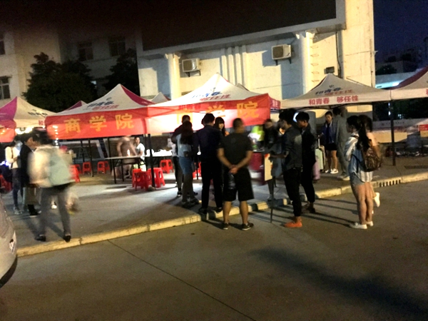 2017年的8月30日,商学院的学生干部张华忙到嗓子沙哑,快要说不出话来了,因为他是商学院的主要学生干部,要全面负责商学院参与迎新同学的工作调度。晚上近11点,在准备结束工作的时候,又来了6名来自贵州的新同学,因为领行李的地方关门了,即使有寝室也不可能睡到床板上,在安排新同学吃完饭后,张华、杨波和崔玉洁等16级的学生干部分别把新同学领到了自己的寝室,把自己的床让给新同学睡,自己则与其他同学挤着睡。张华看到寝室的其他同学也因为白天的忙碌睡得很香,不忍再打扰他们,他拼了几个凳子合衣躺下了。第二天一早,被硬板凳顶了半夜的张华腰酸背疼,几乎爬起不来、、、、、、