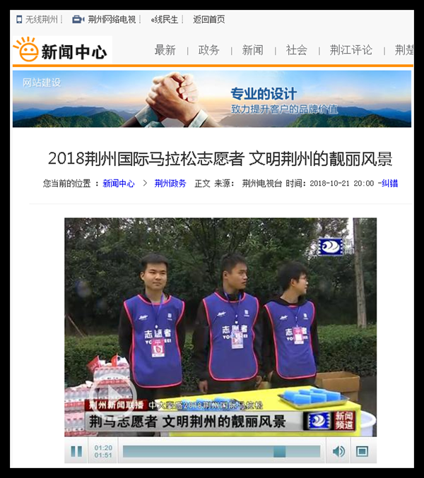 媒体印象之我校学生参加2018年荆州国际马拉松志愿服务——2018荆州国际马拉松志愿者 文明荆州的靓丽风景