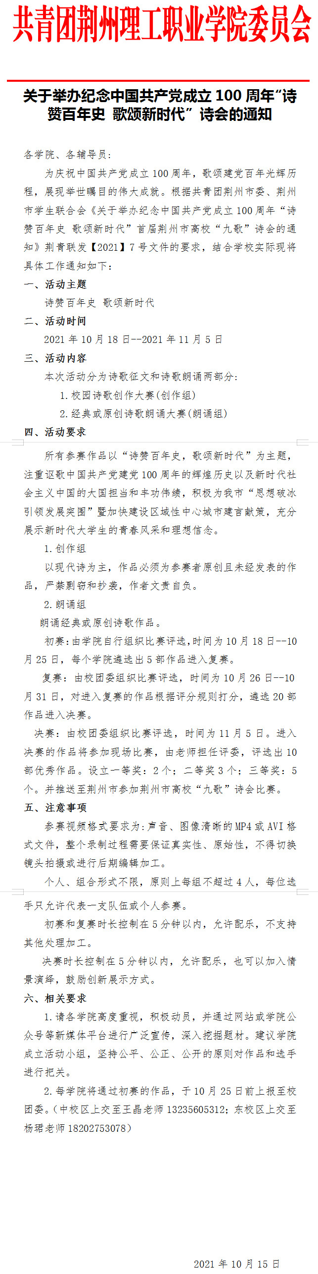 关于举办纪念中国共产党成立100周年“诗赞百年史 歌颂新时代”诗会的通知
