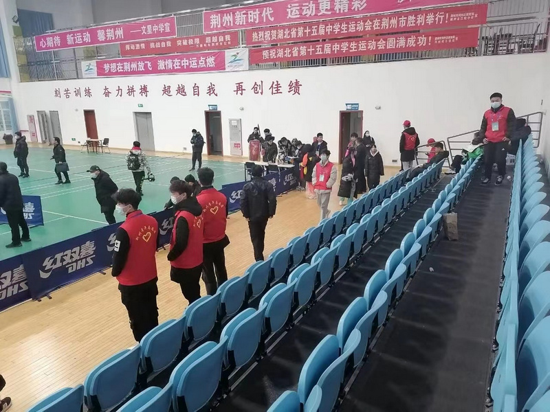 2020年12月19日-20日两天,湖北省第十五届中学生运动会武术比赛于荆州市体育中心举行,为了能够更好地协助此次运动会,根据赛事组委会和市委相关安排,我校派出校团委校学生会共25名志愿者参与本次比赛的服务工作,这25名志愿者服务于比赛的各个方面。