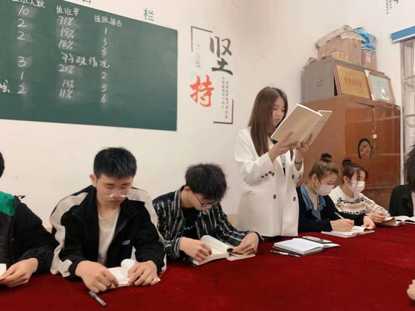 为推动学生骨干深入学好党史,提升团学学生干部的政治素养,营造党史学习教育的浓厚氛围。4月20日晚,我校校团委、校学生会于校团委活动室开展"学党史,悟思想"读书学习交流活动,本次交流会由校团委书记王丽娜同志主持,校团委、校学生会主要干部参加活动。