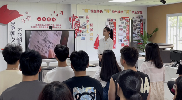 为深入学习贯彻习近平新时代中国特色社会主义思想,推动中国特色社会主义思想和党的二十大精神在同学们的心中走深走实,使同学们真正做到学有所思、学有所获、学有所进,根据团中央《关于在全团开展"万场宣讲进青年"活动的工作提示》文件精神,我校团委于6月11日上午在"三室三坊"一站式学生社区驿站开展了"万场宣讲进青年"启动暨青年化阐释示范宣讲会,此次宣讲由校团委杨珺老师主讲,校团委、校学生会所有团学干部参加此次宣讲。