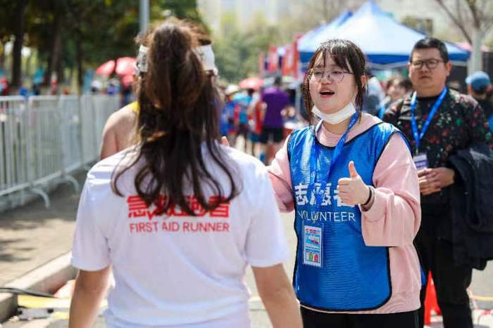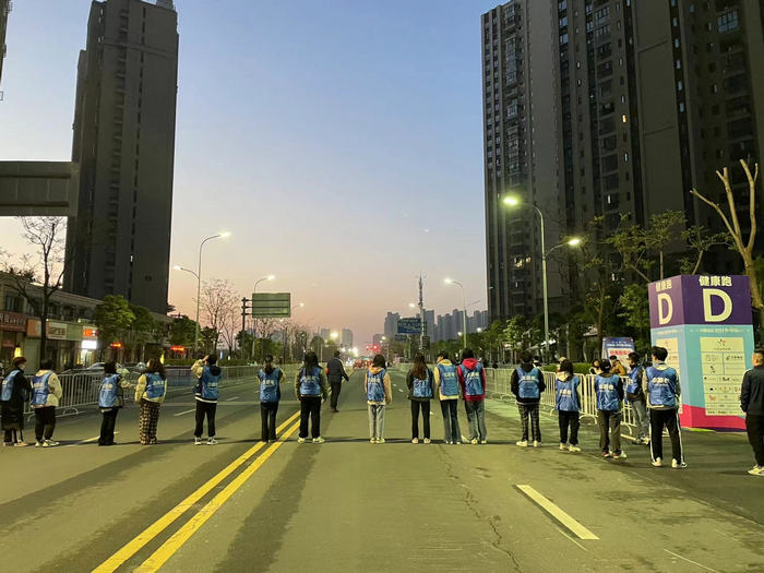 按照赛事组委会安排,我院青年志愿者在比赛期间按照各自职责分工,点对点、一对一做好比赛各项服务工作。热情指引运动员前往比赛区域,仔细核查每位运动员身上的号码布;维持好负责路段的现场观众秩序,引导有序观看;存包区细心登记寄存衣物信息,规范摆放……,古城的各个角落,无论何时,只要有需要,都可以看见他们忙碌的身影,随时在为运动员们提供帮助。从开跑到下午1点半结束,运动员们奋力冲刺、挥洒汗水、矫健奔跑,我校志愿者们做好本职工作的同时,也一起为运动员们加油鼓励、呐喊助威,并随时为运动员们提供水、能量胶等物资补给。终点处的志愿者们上前搀扶运动员并献花,引导运动员领取完赛物资并协助发放纪念奖牌。比赛结束后,我校志愿者充分发扬雷锋精神和奉献意识,在各个服务点继续做好赛后结束相关工作,最晚一批返校学生已是下午3点半。