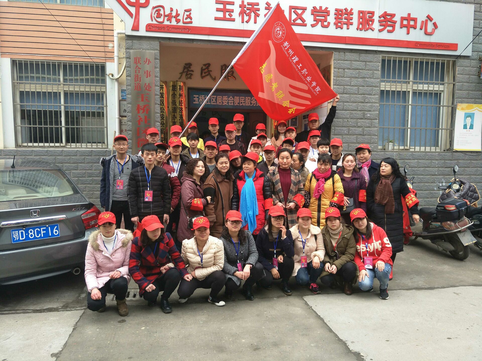 在"雷锋月"到来之际,为进一步弘扬新时代雷锋精神,倡导社会文明新风,深化学雷锋活动,培养学生乐于助人的行为习惯和道德情操,加强学校精神文明建设,掀起学校学雷锋活动的新高潮。荆州理工职业学院于2017年3月5日举办了"玉桥小区雷锋月"活动。校团委志愿者全体成员和智能系志愿者共36人,在春日的微风中拾捡白色垃圾、烟头2个半小时,没有抱怨,没有早退。活动结束后,全体志愿者和玉桥小区居委会人员一起合影留恋。
