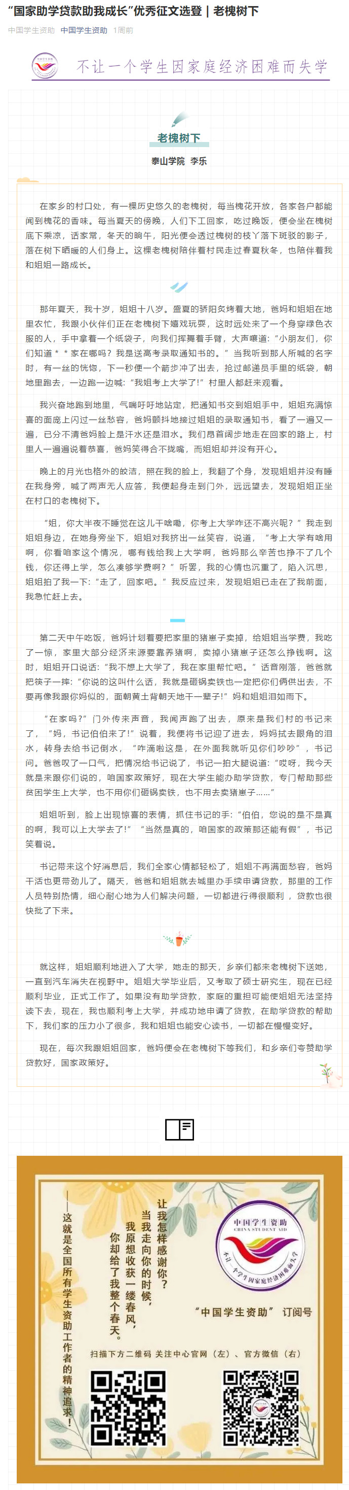 “国家助学贷款助我成长”优秀征文选登 | 老槐树下