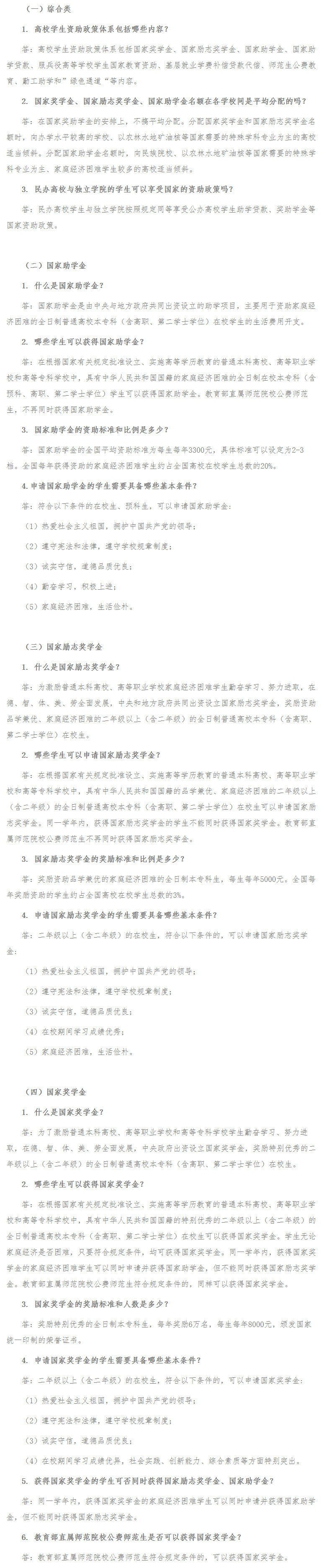 高等教育阶段学生资助政策问答(本专科生、预科生)(一)
