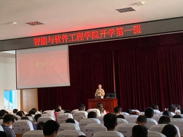9月26日我校的学术报告厅里。坐满了早已等候多时的同学们。大家都在兴奋地等待着属于他们自己的《开学第一课》。为他们讲授这一课的正是智能与软件工程学院的刘晓艳老师。