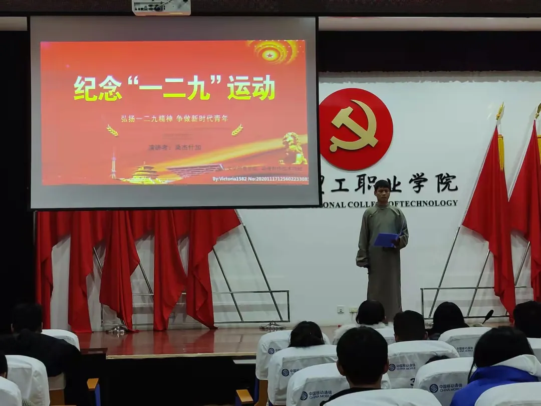 为纪念"一二·九"爱国运动86周年,加强学生爱国主义教育,以行动贯彻新时代中国特色社会主义,弘扬中华民族精神,传承新时代新思想,牢记历史重担。我校于12月8日举行"一二·九"爱国演讲竞赛决赛。