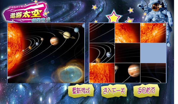 荆州理工信息与智能工程系学生作品——宇宙拼图游戏:是一款可以选择关卡的游戏。