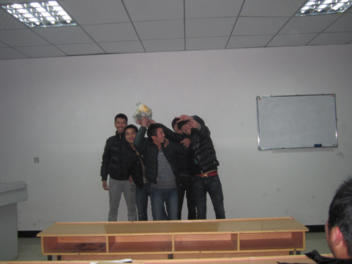 游戏环节的成语接龙让我们阵亡了多少人,多少个小组。我们组也许是中彩票了,居然是第一个上阵,主持人以一个龙蛇演义开头,而我们是接的下一个,一个接一个,很快我们小组就败了。一个小组一个小组的失败与成功,其中,也有欢笑,也有郁闷,不过到最后都只剩开心。后来只剩下陈方林他们组笑到了最后.成功之后都有胜利的果实吧!那当然他们也有,看着他们那如饥似渴的眼神就知道他们是为了什么而来的。
