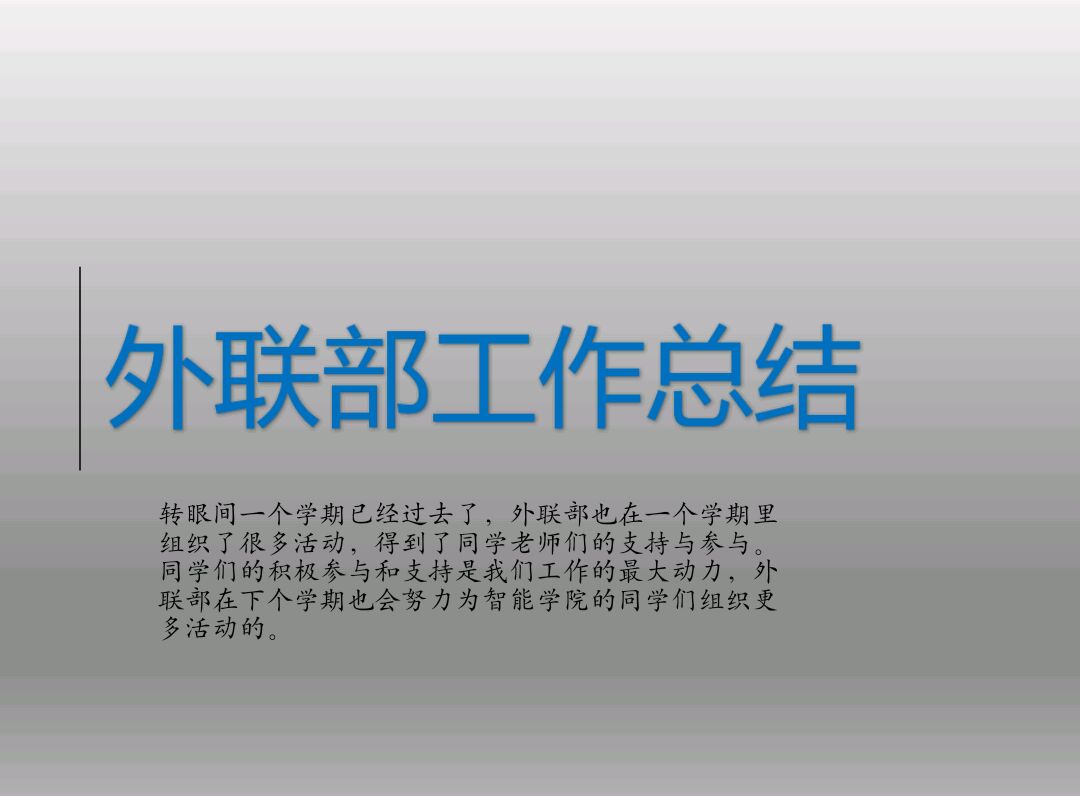 过去的成绩与辉煌大家已有目共睹,未来的努力与收获已踌躇满志,我们的学生会将会一如既往地做好本职工作,为智能学子的共同进步努力奋斗。