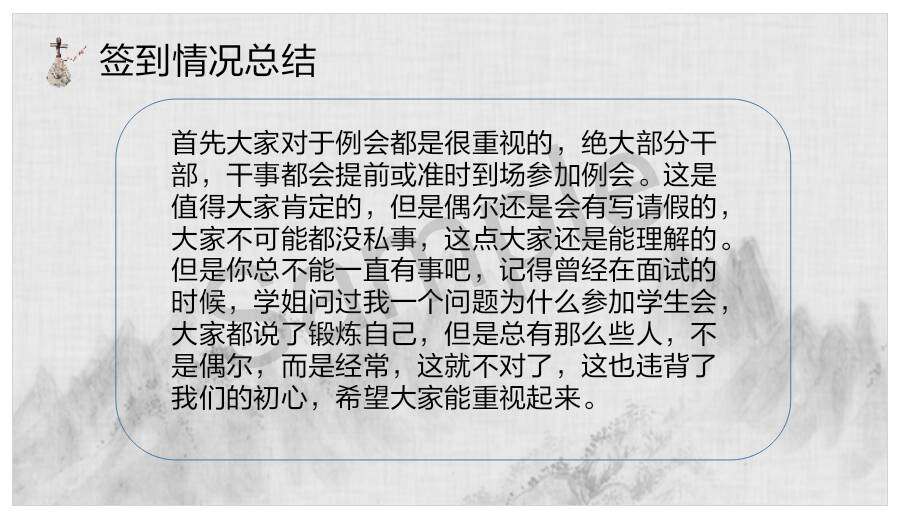 本周二是我系最后一次全体例会,各部门在例会上做了相应的学年总结。