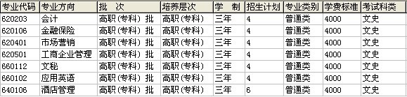 海南省2011年招生计划