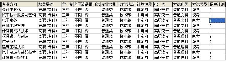 2014年内蒙古自治区分专业招生计划