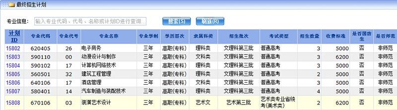 2015年江西省分专业计划