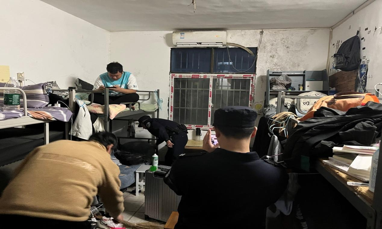 在检查中,警官和职教中心辅导员逐一对学生物品进行详细检查,看是否存在违规物品,并对学生做法律和安全知识教育,提醒学生不得持有管制刀具、违规电器等,宿舍物品必须摆放有序,留出生命通道,发现问题及时汇报。