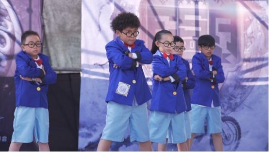 贵州凯里的颜舞全明星队伍一段《名侦探柯南》的LED视频首先吸引全场"火力"。紧接着一群10来岁"小柯南"的登场更是让人耳目一新,用街舞形式讲解破案细节,裁判座位上都传来了一声"喔噢!"的感叹声。